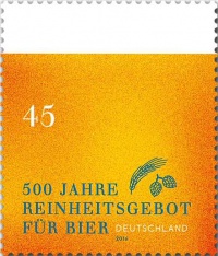 Het Reinheitsgebot schrijft voor dat bier met onder andere hop moet worden gebrouwen. In 1998 werd met deze zegel herdacht dat meer dan 1100 jaar hop werd verbouwd in Duitsland.