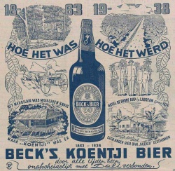 Een Beck's advertentie uit 1938 Deze advertentie maakt duidelijk hoe destijds over vooruitgang werd gedacht: Slordig bos maakte plaats voor keurige percelen tabaksplanten.